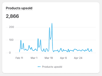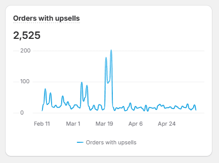 This metric shows how many orders include at least one upsold item, in the selected time period. It helps merchants see how often their customers are accepting upsell offers.