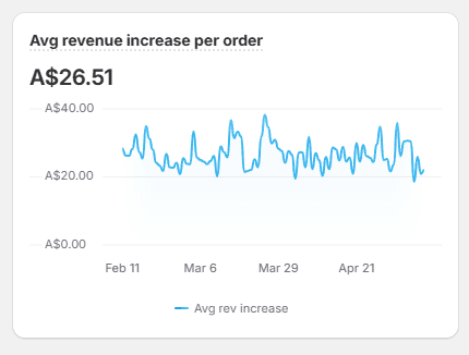 This metric calculates the average upsell revenue generated per order for the selected time period. It indicates how effectively upsells are increasing the average order value, helping merchants evaluate the impact of their upsell strategies.