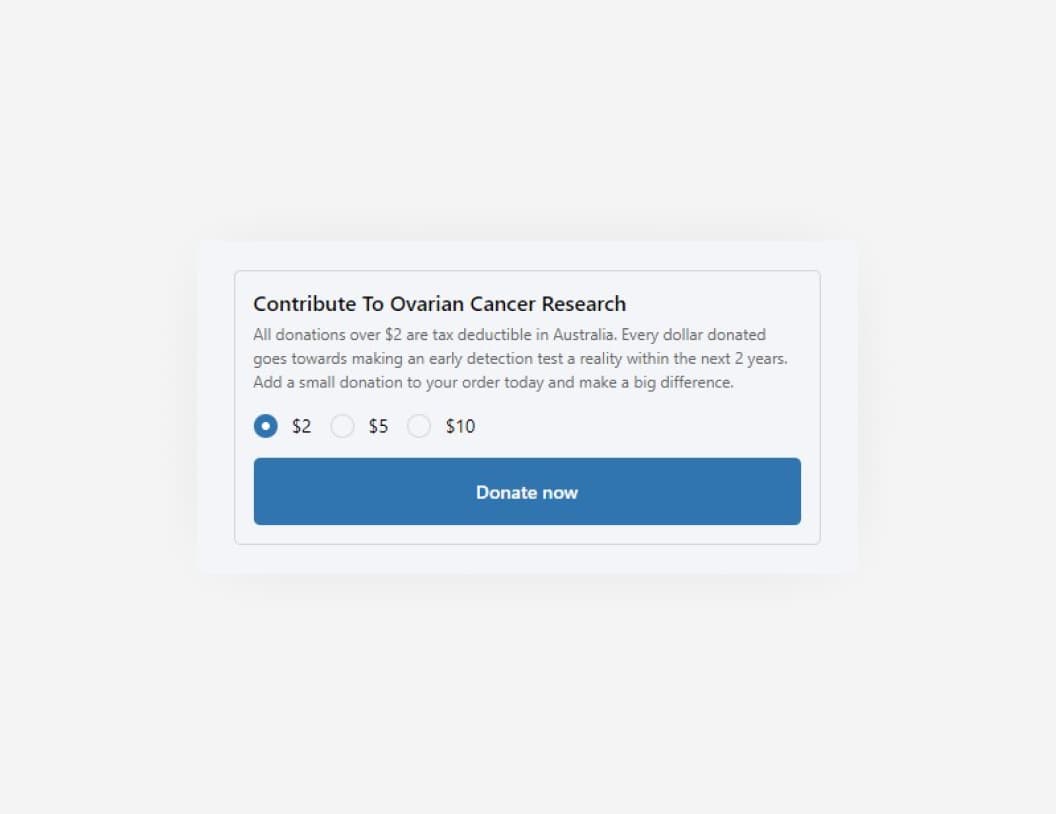 Radio upsells are typically used to offer a choice of products to the customer. This could be a choice of shipping options, a choice of products to add to the cart or a choice of products to donate to a charity.